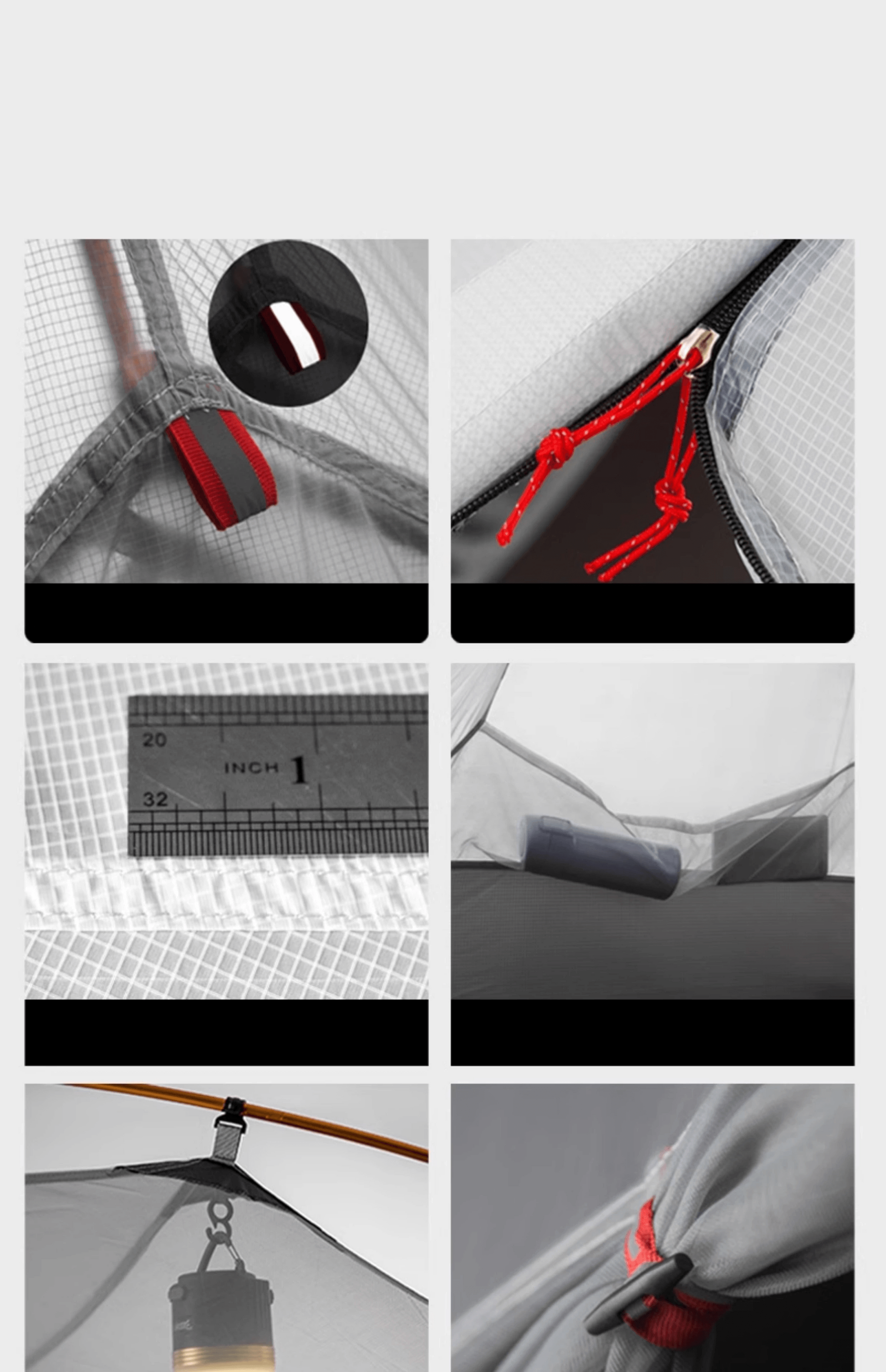 | Inner Tent | 20D Gauze (3 Season)/ 15D Nylon(4 Season) |
